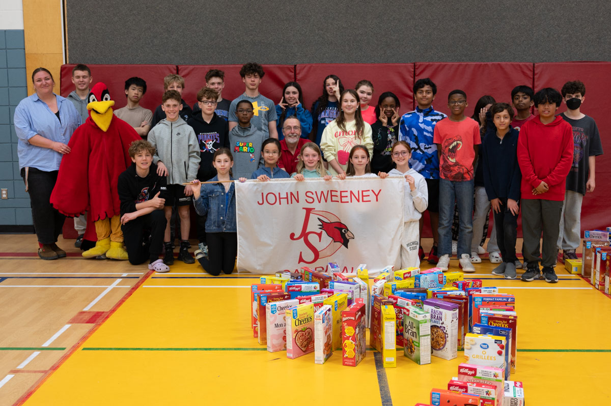 This Lent, the John Sweeney Catholic Elementary School community came together in a powerful show of generosity through their annual Cardinals Care project. Students were invited to support those facing food insecurity by donating unopened boxes of cereal for the Waterloo Region Food Bank — with each student challenged to bring in two boxes.