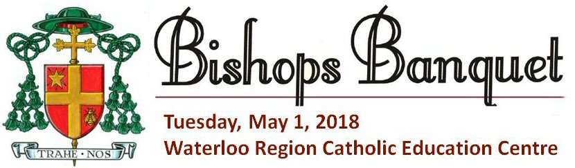 The Annual Bishop’s Banquet is a signature event in the annual WRCSF calendar. The 2018 banquet – held in honour of the Most Rev. Bishop Doulas Crosby, O.M.I. – takes place on Tuesday, May 1, 2018 at the Waterloo Region Catholic Education Centre in Kitchener. Tickets are now available by calling 519-578-3660 ext. 2373 – or by emailing Jody Fritz.